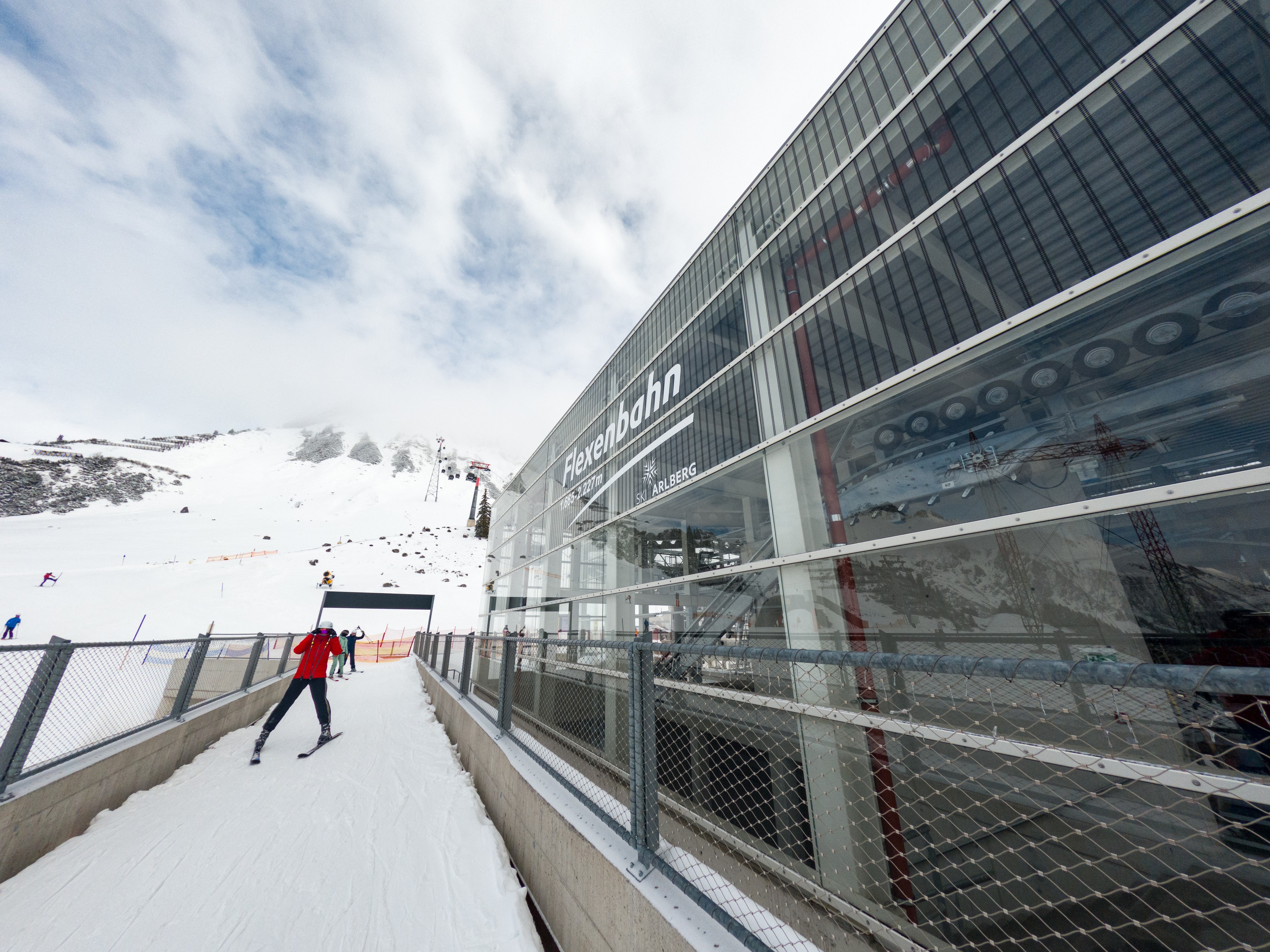 Widowiskowa dolna stacja Galzigbahn w St. Anton