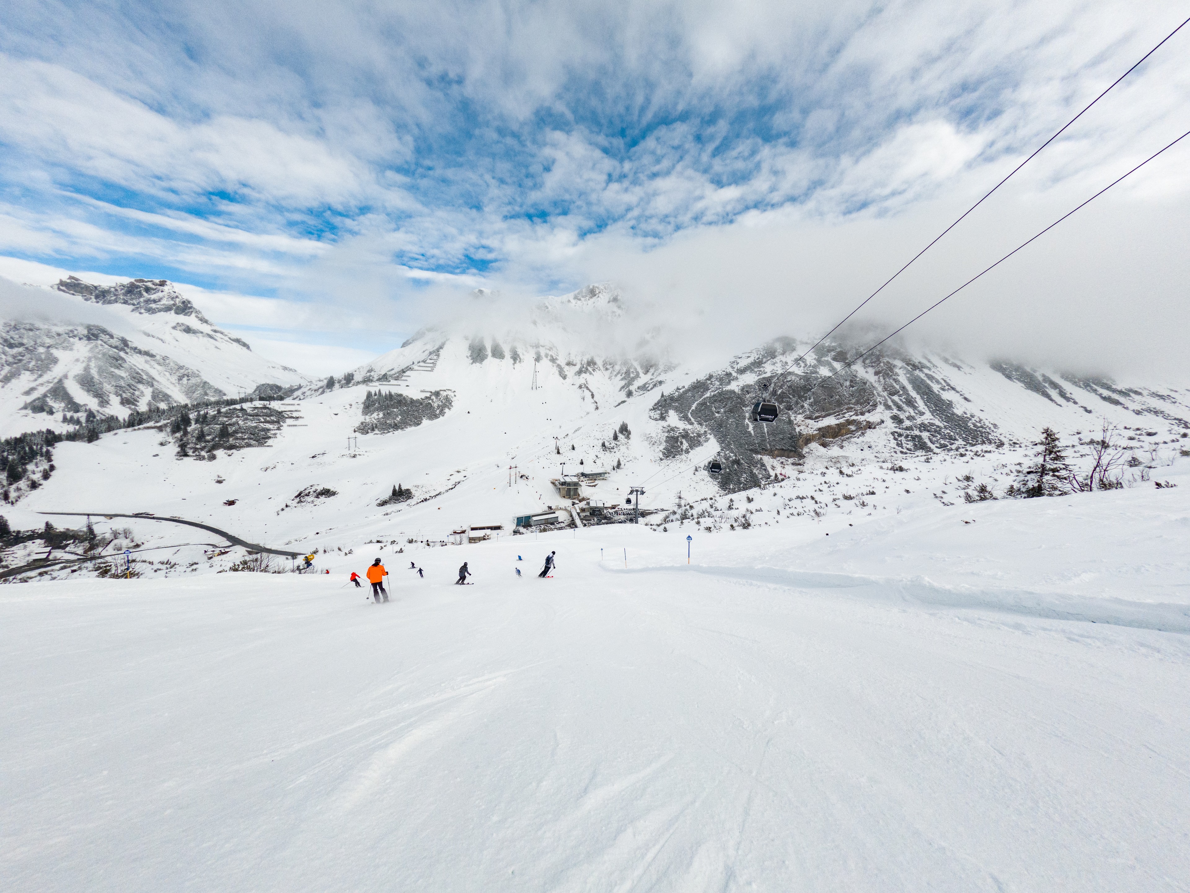 Albonabahn II i zjazd w stronę dolnych stacji Flexenbahn i Valfagehrbahn, Stuben