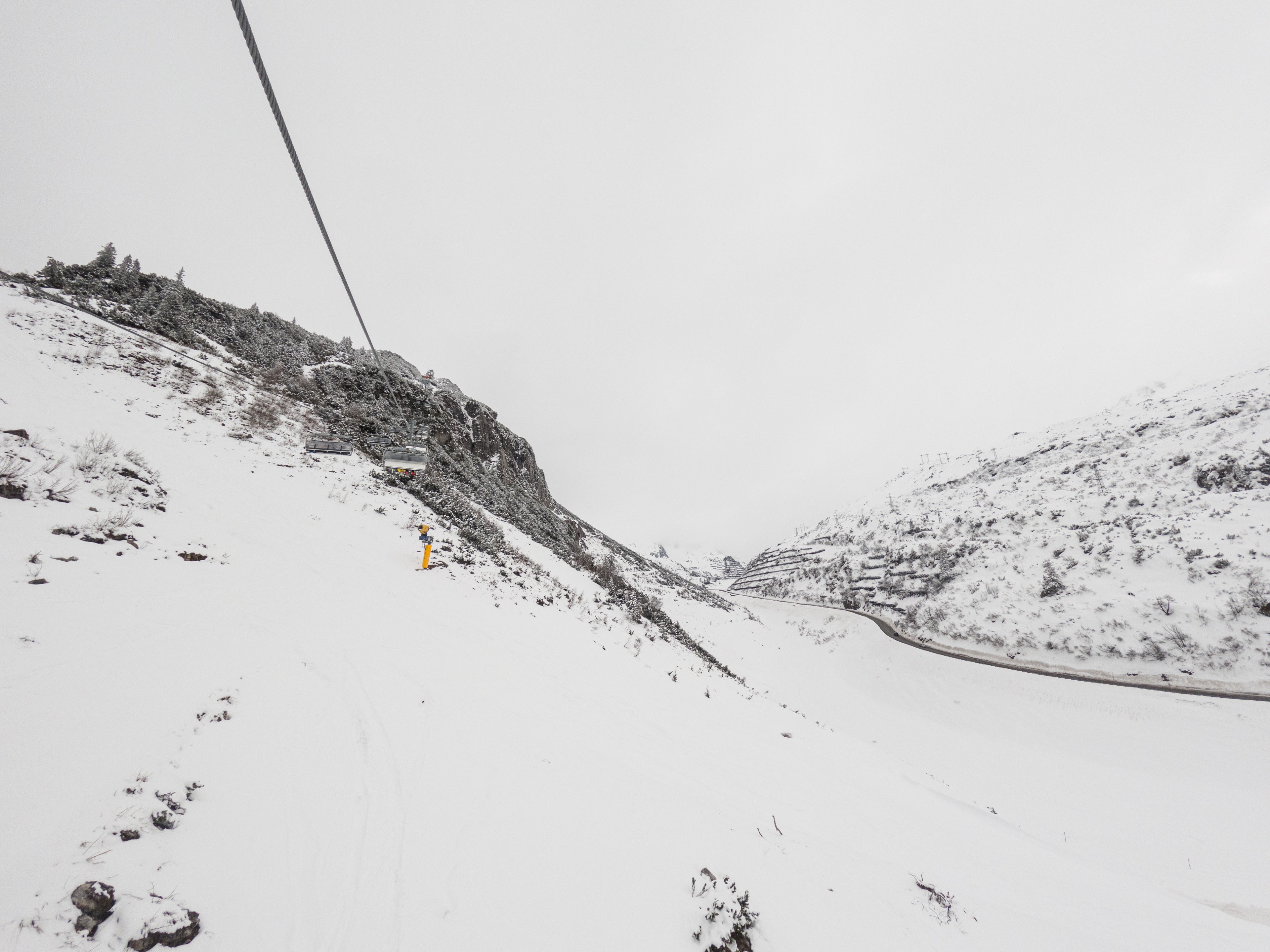 Dolna stacja Nassereinbahn w St. Anton to wysokość tylko 1291 m n.p.m. W marcu śniegu było tu naprawdę mało.